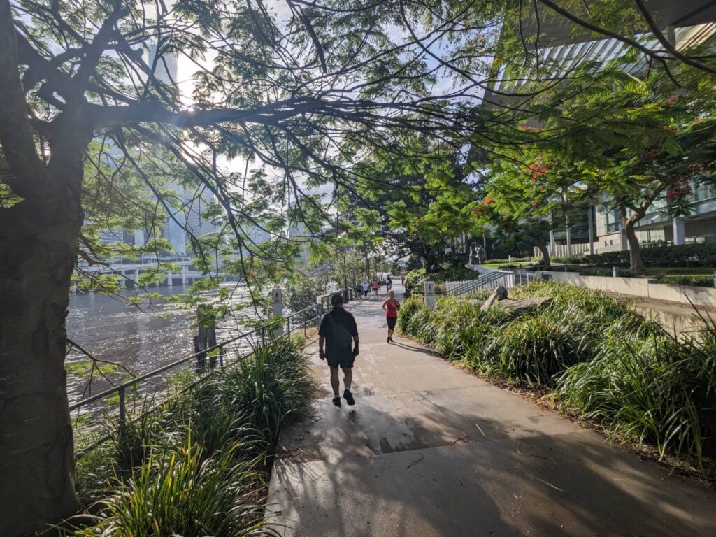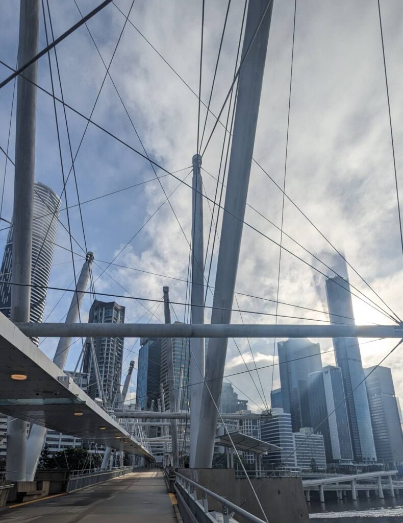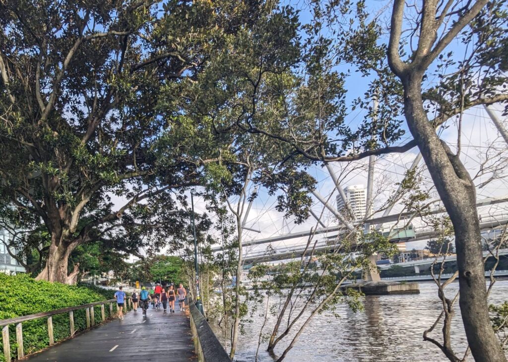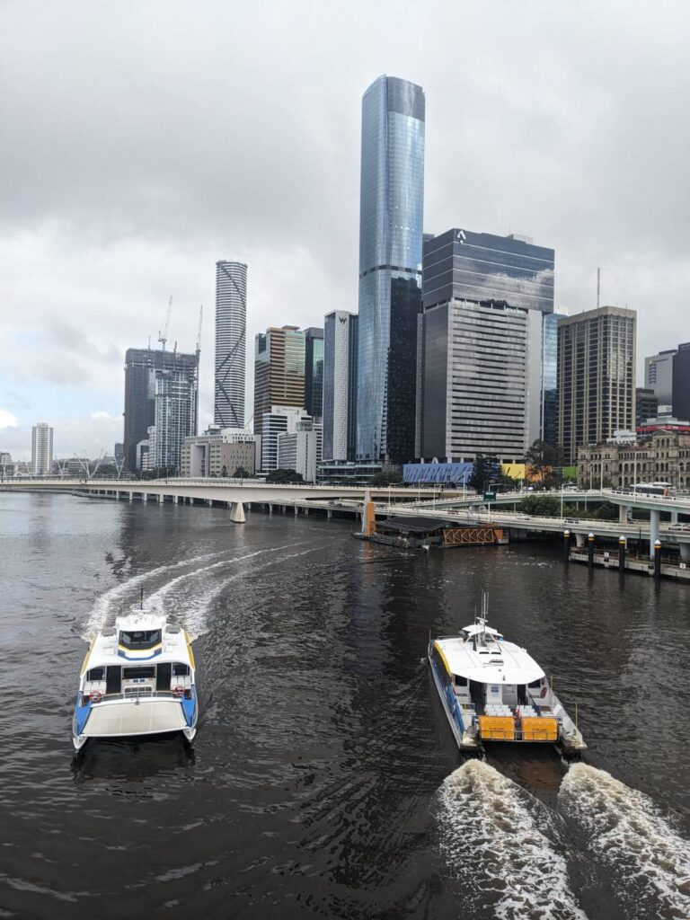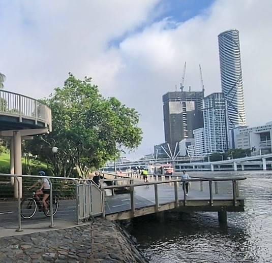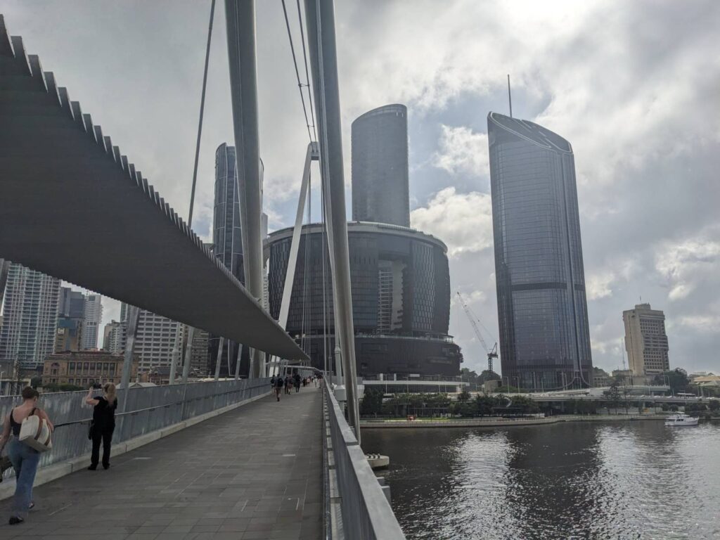 Brisbane (ca. 2,6 mio Einwohner) ist nochmal viel moderner, grüner, umwelttechnisch fortschrittlicher als Melbourne (ca. 5,1 mio). Es gibt sehr viele Platz für Fußgänger und Radfahrer, eigene Brücken und fliegende Korridore, sehr aufwändig, imposant, auch mit durchgängiger Überdachung gebaut.
